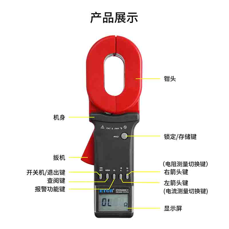 ETCR2000C+鉗形接地電阻儀又稱鉗形接地電阻表、單鉗接地電阻測試儀、環(huán)路電阻測試儀、防雷接地電阻表、防雷地阻儀,用于接地電阻、回路電阻測量、接地電流測量、接地故障判斷。在測量有回路的接地系統(tǒng)時,不需斷開接地引下線,不需輔助接地極,安全快速、使用簡便。鉗形接地電阻儀廣泛應(yīng)用于電力、電信、氣象、油田、建筑及工業(yè)電氣設(shè)備等的接地電阻測量、回路電阻測量。長鉗口特別適宜于扁鋼接地的場所。