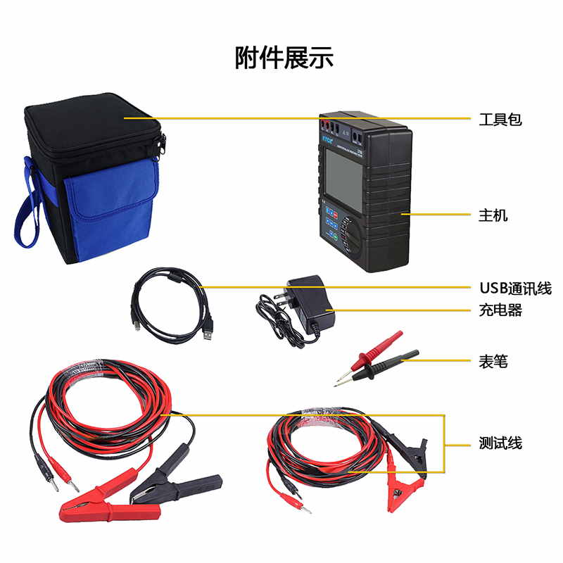 測試電流:>1A,四線法測試,分辨率:0.001Ω,具備大容量鋰電