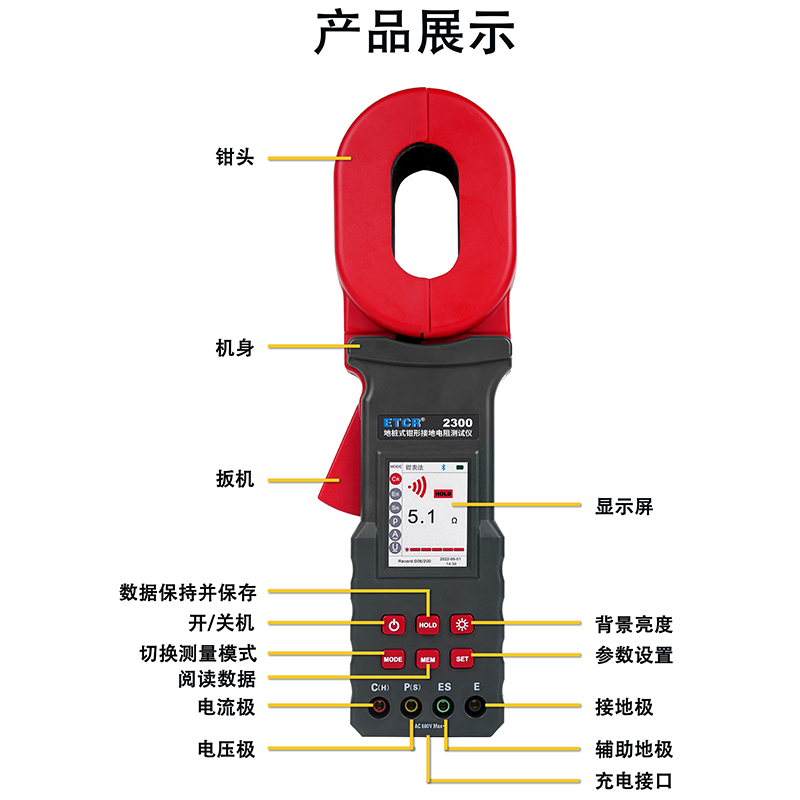 | ETCR2300鉗形接地電阻儀 | 65mm×32mm | 0Ω~20.00kΩ | 500組 | 有 | 有 | 有 |