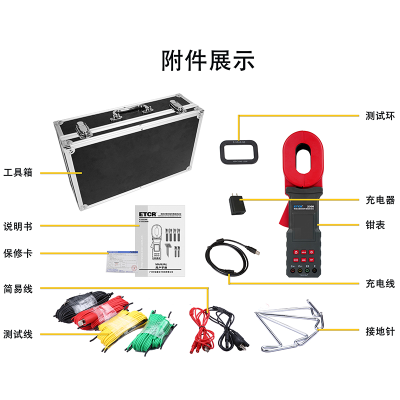 ETCR2300地樁式鉗形接地電阻表又稱地樁式鉗形接地電阻表、地樁式鉗形表,用于現場測量接地電阻、土壤電阻率、接地電流、接地電壓。儀表具有鉗表法、二線法、三線法、四線法、選擇法等各種測量方法,儀表導入FFT(快速傅立葉變換)技術、AFC(自動頻率控制)技術,具有獨特的抗干擾能力和環境適應能力,重復測試一致性強,確保測量的高精度、高穩定性和高可靠性。