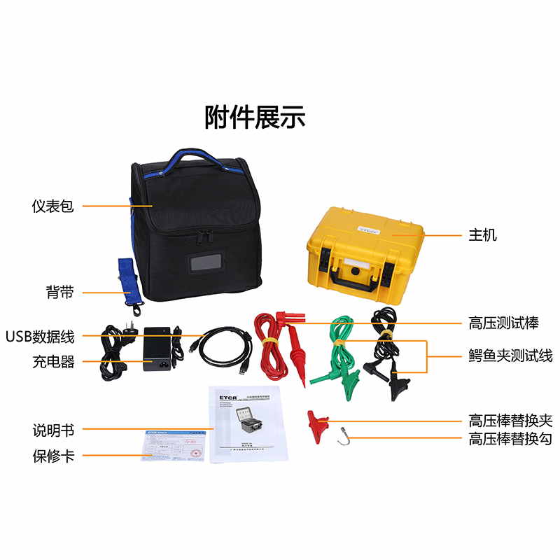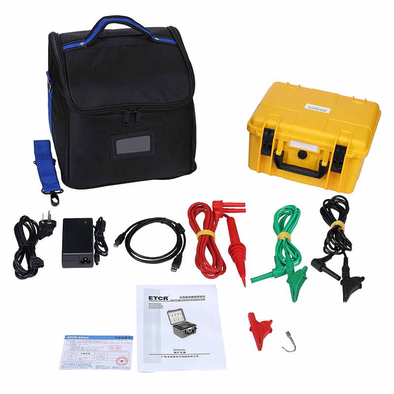 儀表的測試計時器自動記錄測試時間、存儲含有日期時間的測試結(jié)果,觸摸屏可以非常方便的查閱記錄的歷史數(shù)據(jù),完全隔離的USB接口和藍(lán)牙通信可將測試數(shù)據(jù)安全的上傳到PC機(jī)或手機(jī),供用戶進(jìn)行數(shù)據(jù)分析。儀表配置帶有雙層絕緣及屏蔽層的測試線,高壓棒配有可更換的鱷魚夾及鉤子,可適應(yīng)各種測試場所。儀表采用堅(jiān)固的雙層外殼結(jié)構(gòu),儀表外箱防護(hù)等級IP65,能防止運(yùn)輸存儲過程中水分灰塵的侵入及防止撞擊有效保護(hù)儀表。