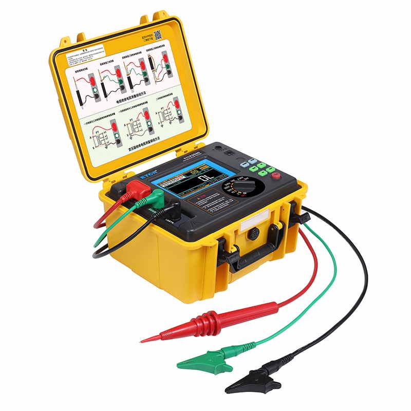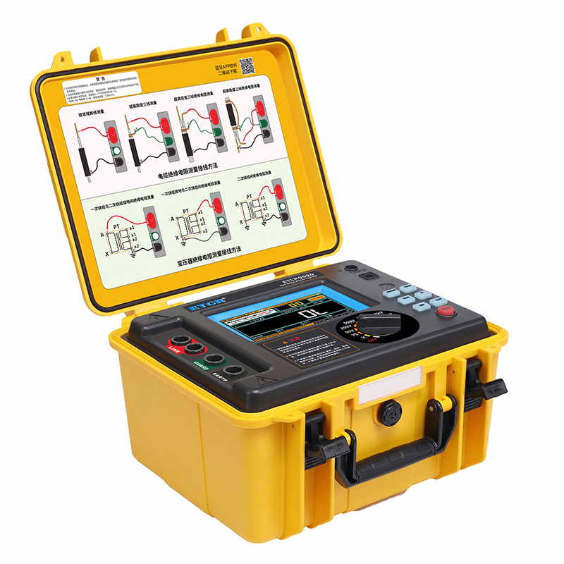 ETCR3520高壓絕緣電阻測試儀又稱高壓兆歐表、高壓絕緣電阻表,儀表擁有完善的各種絕緣電阻指標(biāo)測試功能、自設(shè)測試電壓功能、良好的抗干擾能力,在變電站等有強(qiáng)感應(yīng)電環(huán)境下、以及在分布電容較大的使用場景下具有明顯優(yōu)勢。儀表采用真彩觸摸屏,所有測試數(shù)據(jù)及電池電量同屏顯示一目了然,旋鈕開關(guān)和按鍵組合使得操作非常簡單。用戶無需費(fèi)力記憶操作方法,點(diǎn)擊屏幕的“HELP”即可彈出操作方法,有效指引用戶操作儀表。產(chǎn)品適用于大容量、高壓、強(qiáng)感應(yīng)電環(huán)境下電氣設(shè)備、輸電線路等大型設(shè)備的絕緣電阻測試。是電力、電信、氣象、機(jī)房、油田、機(jī)電安裝和維修以及工礦企業(yè)供電部門常用而必不可少的儀表。