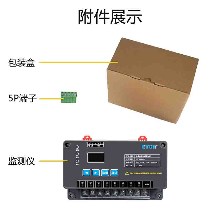 | ETCR3580B絕緣電阻在線監(jiān)測儀 | 50V、100V、250V、500V、自定義 | 0.1MΩ~20GΩ | 2mA MAX | 1路~8路可選 | RS485、藍牙通訊 |