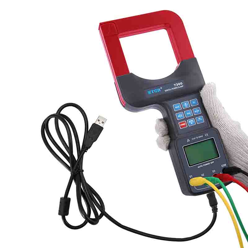 ETCR7300大口徑三相鉗形功率表又名鉗形功率計、超大口徑鉗形功率表、三相鉗形功率表,用于現場測量三相交流電壓、電流、漏電流、電壓間相位、電壓電流間相位、頻率、相序、電能、有功功率、無功功率、視在功率、功率因數、總功率等電能參數。還能用于判別變壓器接線組別、感性、容性電路,讀出差動保護各組CT之間的相位關系,檢查電度表的接線正確與否,檢修線路設備等,為用電檢查人員提供一種安全、準確、便捷的新型電力儀表。