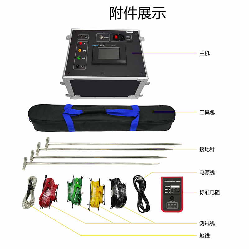產品圖片產品型號名稱接地阻抗測量范圍土壤電阻率測量范圍電流等級輸出電壓報警功能存儲功能
