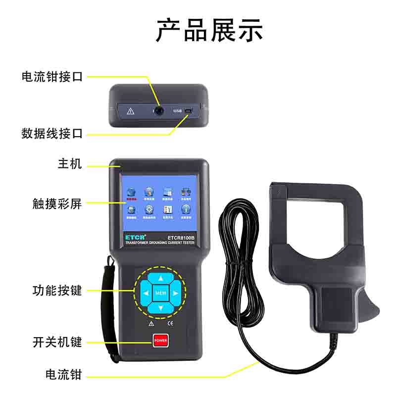 ETCR8100B變壓器鐵芯接地電流測試儀又稱變壓器鐵芯接地參數(shù)測試儀、接地電流測試儀,用于測試電力系統(tǒng)中變壓器鐵芯接地電流、漏電流。儀表由主機(jī)、電流鉗、監(jiān)控軟件、通訊線等組成。電力變壓器是電力系統(tǒng)中重要的電氣設(shè)備,運(yùn)行中一旦出現(xiàn)故障,將會(huì)對(duì)電力系統(tǒng)造成嚴(yán)重的后果。正常運(yùn)行的變壓器鐵芯是單點(diǎn)接地的,如有兩點(diǎn)或兩點(diǎn)以上同時(shí)接地,則鐵芯與大地之間將形成電流回路,最大電流可達(dá)幾十安培,將會(huì)造成鐵芯局部過熱甚至燒毀。本儀表能盡快發(fā)現(xiàn)變壓器潛伏性的故障,是保證變壓器安全運(yùn)行和正常維護(hù)的主要工具。儀表具有抗干擾能力,能適用于變壓器旁強(qiáng)磁場干擾環(huán)境下使用。主要適用于變電站、發(fā)電廠作為變壓器、電抗器等電氣設(shè)備的鐵芯與夾件的泄漏電流測試。也可用于電力、通信、氣象、鐵路、油田、建筑、計(jì)量、科研教學(xué)單位、工礦企業(yè)等領(lǐng)域線路或設(shè)備的電流、漏電流測試。