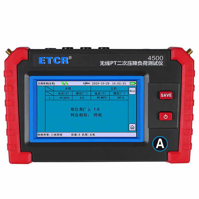 ETCR4500無線PT壓降負(fù)荷測(cè)試儀又稱PT核相儀、PT負(fù)荷測(cè)試儀、PT比差測(cè)試儀,用于現(xiàn)場(chǎng)在線測(cè)試電能計(jì)量裝置電壓互感器(以下簡(jiǎn)稱 PT)的二次回路壓降,以及PT核相、PT負(fù)荷測(cè)試、CT負(fù)荷測(cè)試、三相伏安表、諧波分析等。儀表由2臺(tái)手持終端、6個(gè)電流鉗、2組電壓測(cè)試線等組成,2臺(tái)手持終端具有無線通訊及GPS通訊,可互設(shè)為主機(jī)或從機(jī),實(shí)現(xiàn)同步測(cè)量變電站內(nèi)不同位置之間電流、電壓、相位等參數(shù)。