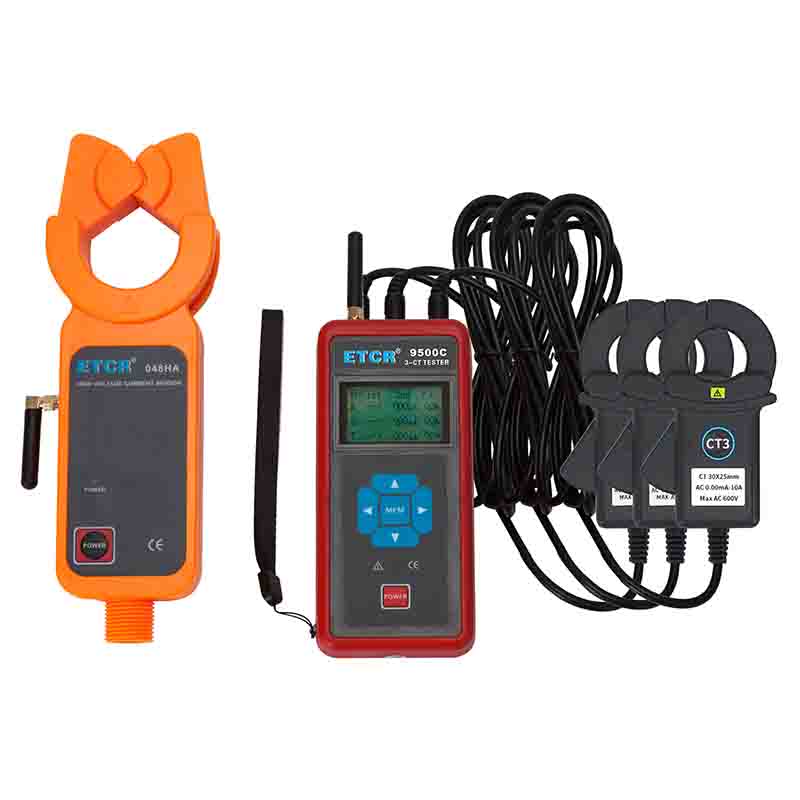 ETCR9500C-030無線高壓CT變比測試儀又稱互感器電流變比測試儀、互感器比差測試儀、電流互感器變比測試儀,用于35kV以下電流互感器的一次電流、二次電流大小、變比,相別、極性判斷。儀器采用3個二次低壓電流鉗(口徑25mm×30mm)同時測試低壓線路,可直接確定高壓端與低壓端的對應相位關系,無需多次鉗測。廣泛應用于變電站﹑發電廠﹑電力稽查部門、工礦企業以及檢測站﹑電工維修部門進行電流檢測、反竊電及野外電工作業等。